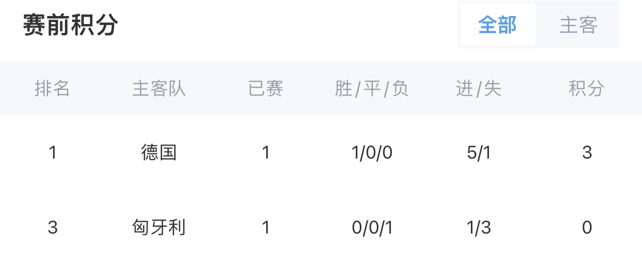 小组赛首轮,德国5-1大胜苏格兰,匈牙利1-3不敌瑞士。