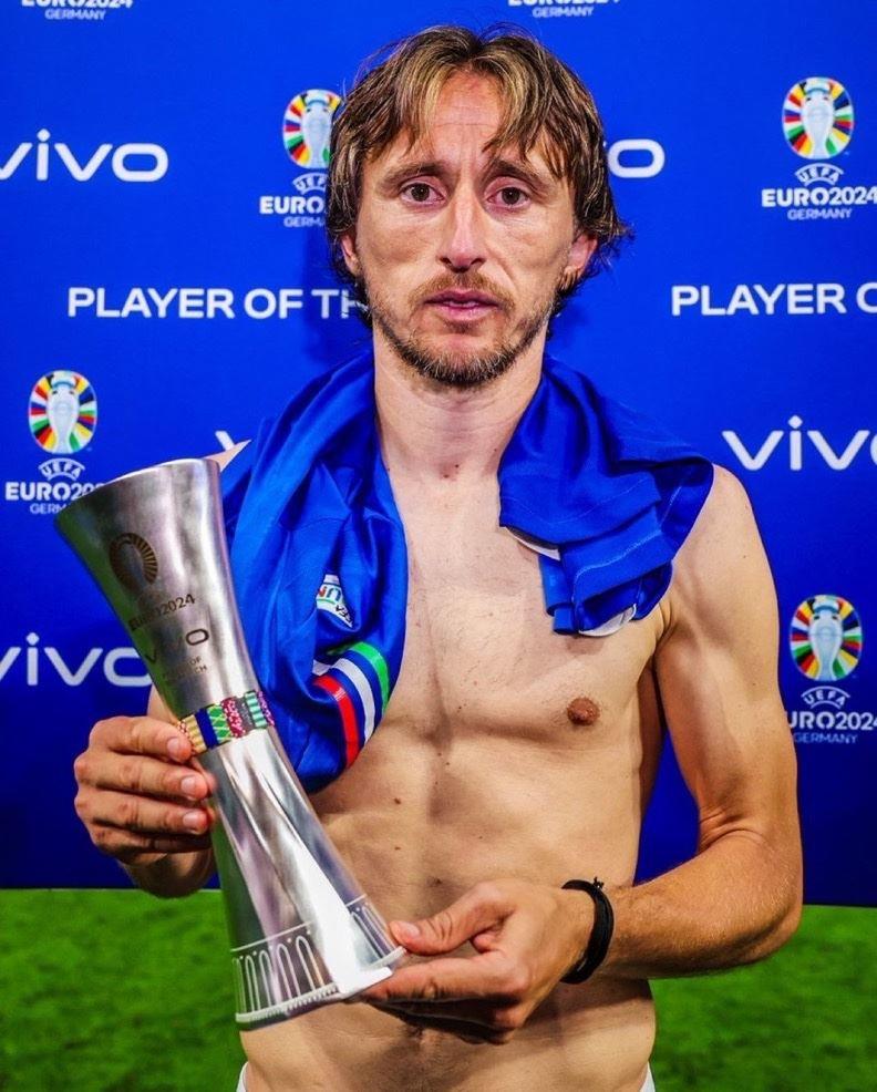 欧洲杯B组第三轮结束,意大利1-1战平克罗地亚,赛后,打入进球的莫德里奇当选全场最佳!