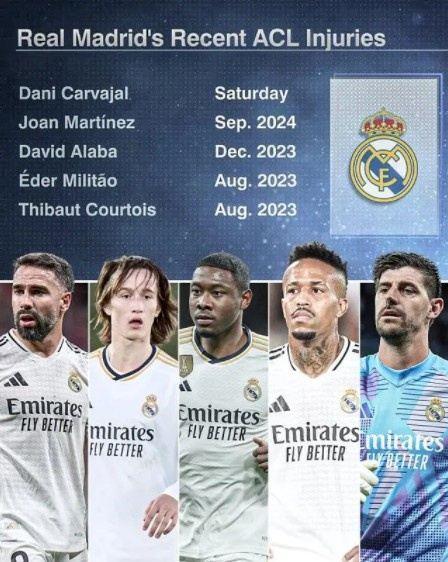皇马成为ACL伤病的重灾区。