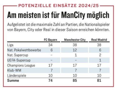 上赛季,曼城、皇马和拜仁都没有达到极限场次,但超负荷运转已经成为了豪门的日常。