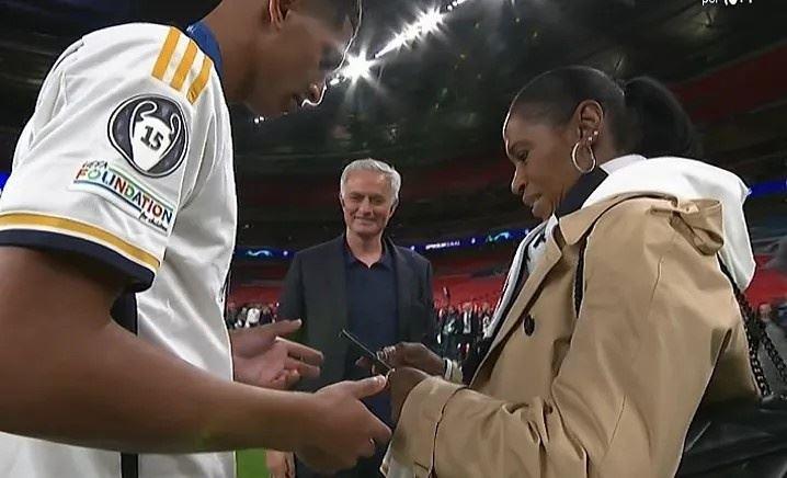 赛后,贝林厄姆的母亲让贝林为她和穆里尼奥拍照。