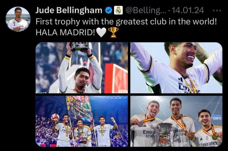 2024年1月15日,贝林厄姆随队夺得西超杯