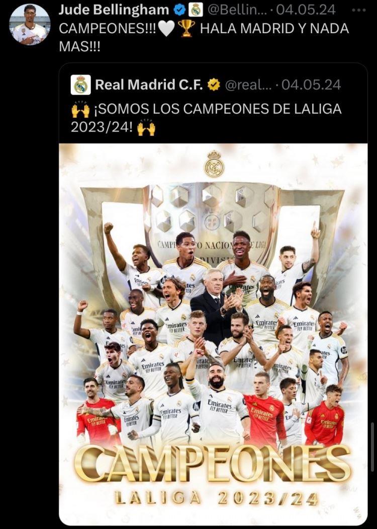 2024年5月5日,贝林厄姆随队夺得西甲