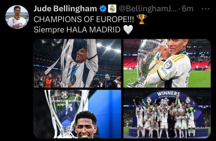 2024年6月2日,贝林厄姆随队夺得欧冠