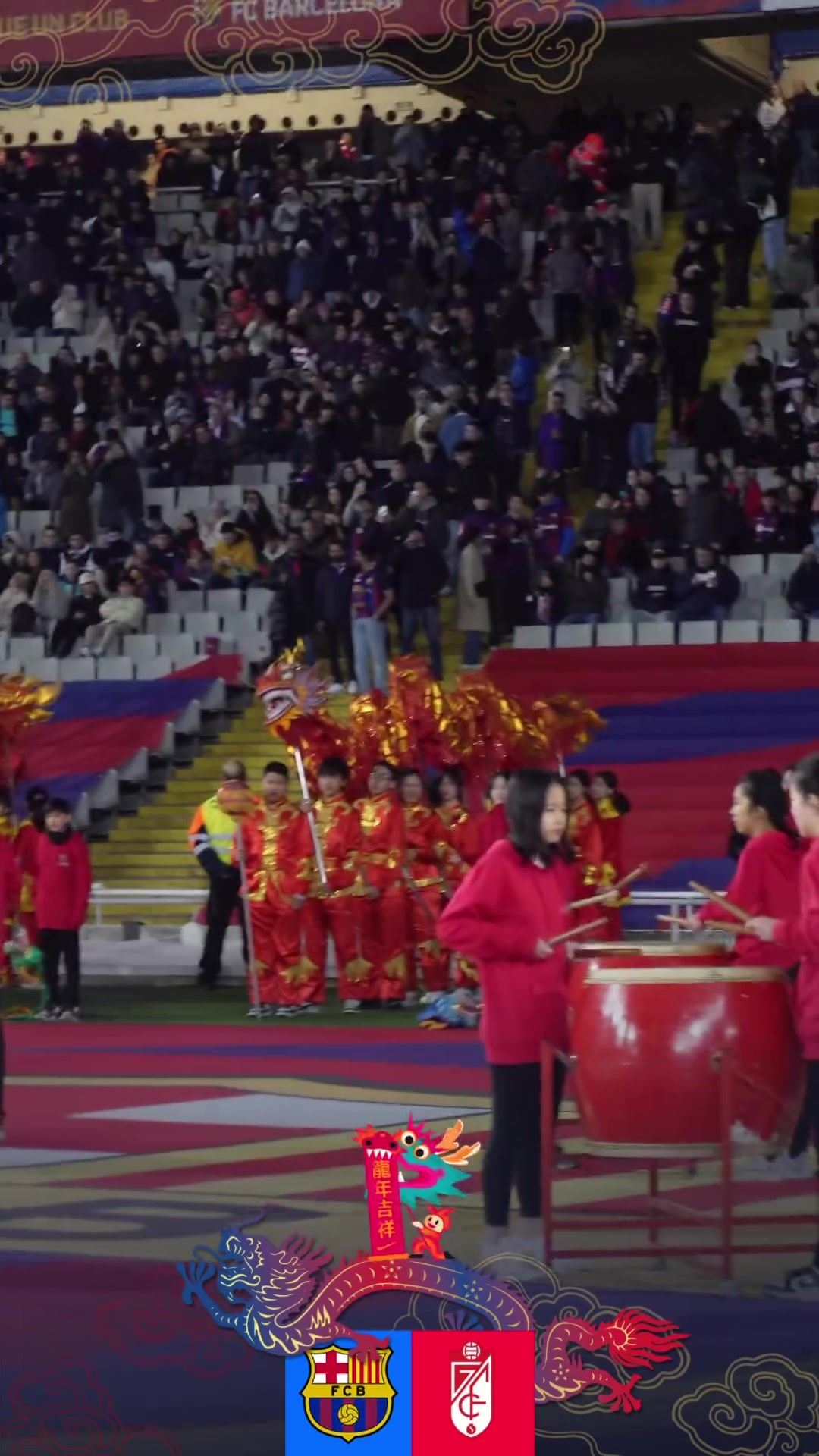 巴萨主场3-3战平格拉纳达的中场休息期间,现场舞龙表演↓