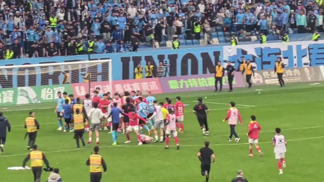 中甲第9轮,十人大连英博主场0-1不敌广州队。赛后双方发生激烈冲突!