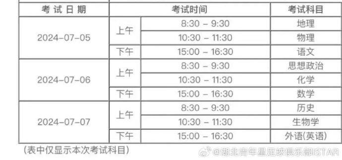 湖北青年星与大连鲲城的比赛于7月6日下午16:30照常进行。与此同时,湖北青年星一线队球员杨博雯、林尚远、闵先焜、范绪林和杨博越却还有本年度湖北省普通高中学业水平合格性考试需要参加。
