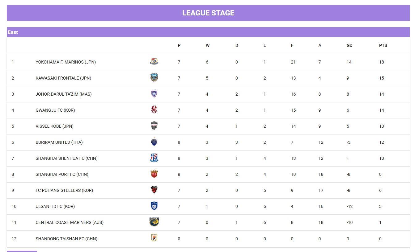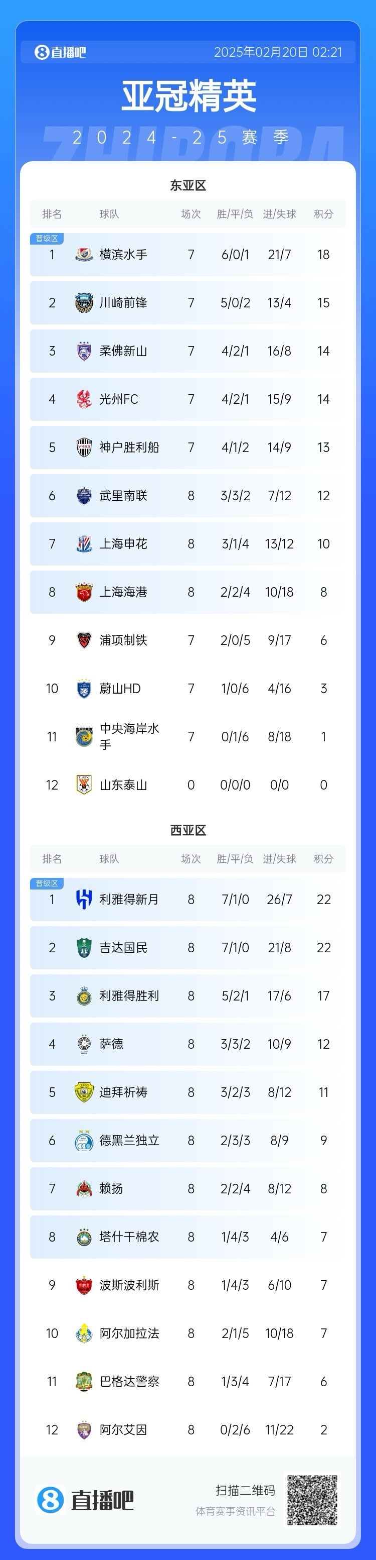 亚足联官方更新了亚冠积分榜和晋级球队,最新积分榜中,山东泰山战绩清零!
