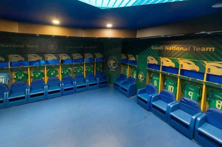 世预赛亚洲区第三阶段C组第7轮,国足客战沙特的比赛一触即发。赛前,沙特国家队晒出了更衣室内景进行预热。