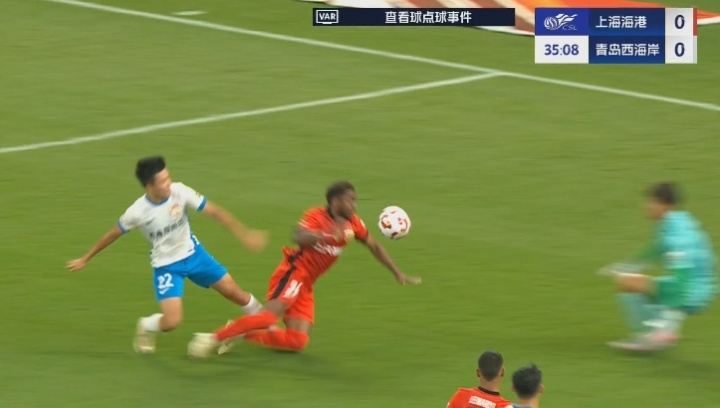 北京时间今晚19点,中超第18轮,上海海港vs青岛西海岸,比赛第31分钟,加布里埃尔禁区倒地,VAR介入判罚主裁判听耳机5分钟后,亲自跑到场边去查看视频,最终历时7分钟判罚点球,杨希被判罚黄牌。