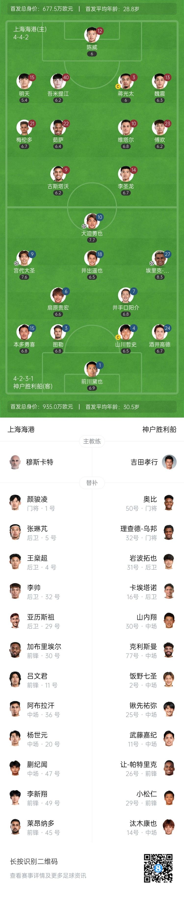 北京时间20:15,亚冠精英联赛东亚区第1轮,上海海港vs神户胜利船,比赛在上汽浦东足球场打响!上半场,埃里克-利马远射帮助神户取得领先;古斯塔沃半单刀的机会被门将扑出;李圣龙小禁区的鱼跃冲顶也被门将拒绝。半场结束前,埃里克-利马助攻宫代大圣再下一城;大迫勇也再下一城。半场结束,上海海港暂时在主场0-3落后神户胜利船。