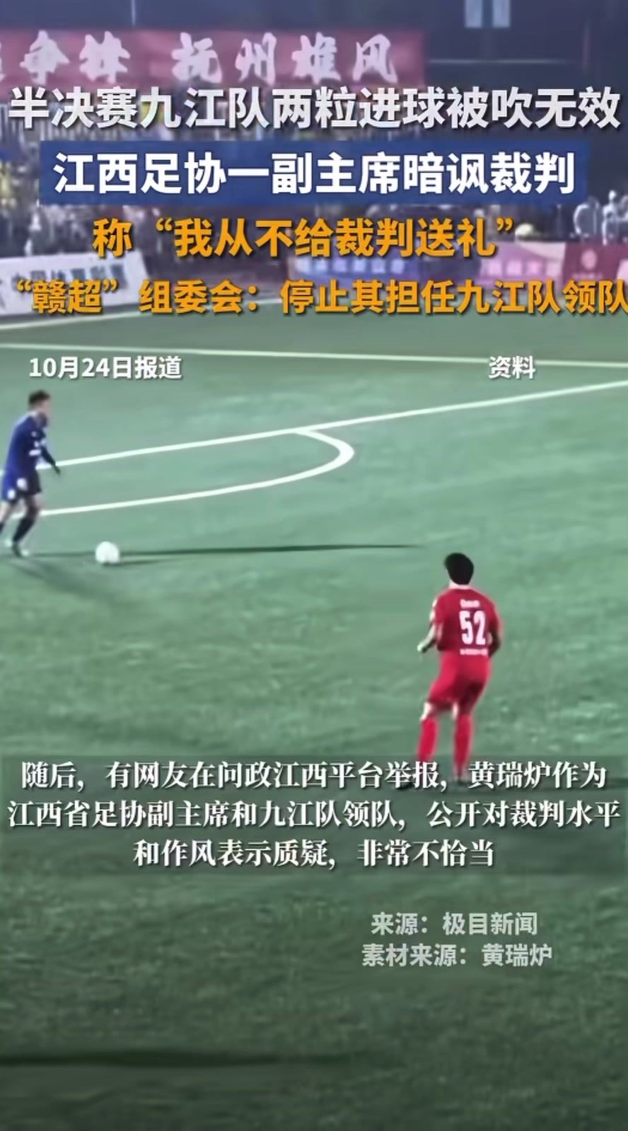 搜体育 足球资讯 赣超半决赛赛后炮轰裁判,江西省足协副主席、九江队领队被处罚