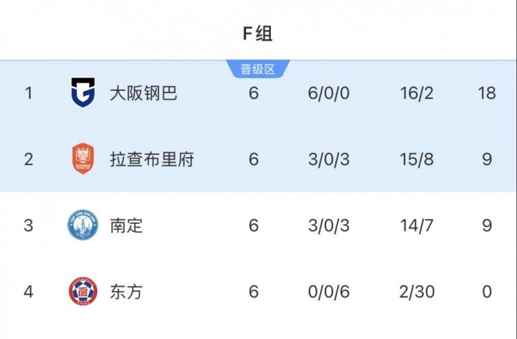 亚冠二级联赛F组第6轮,南定9-0大胜东方但仍无缘晋级。
