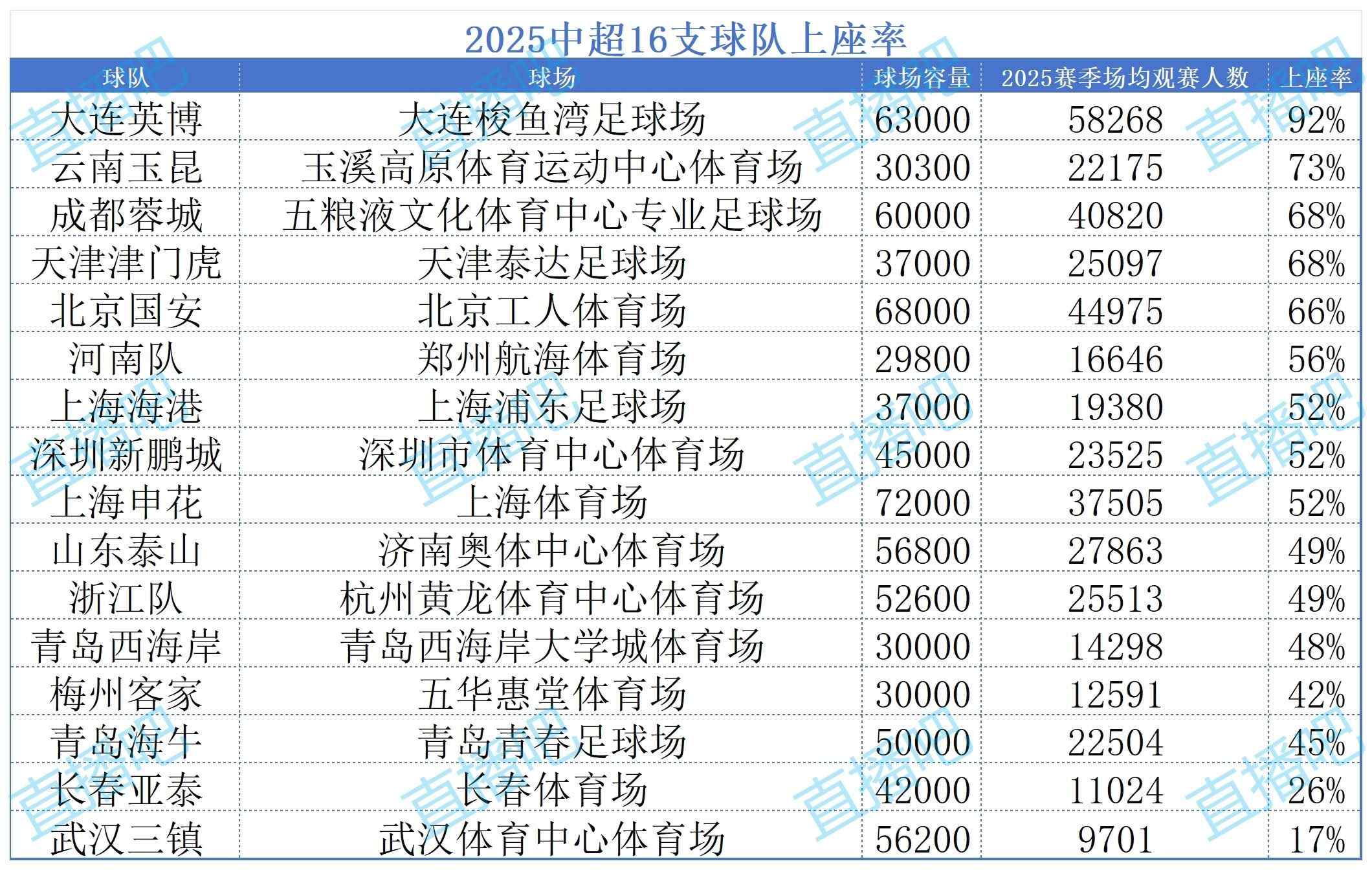 足球报报道了2025赛季中超球队的收入,其中披露了各队的门票收入。