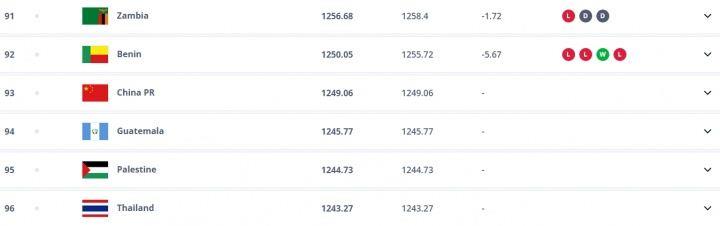 FIFA世界排名刚刚更新,国足仍第93,亚洲第14名。