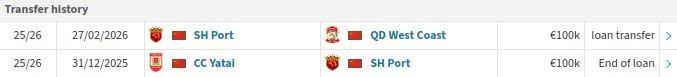 搜体育 足球资讯 德转显示艾菲尔丁租借加盟青岛西海岸,租期至今年12月31日