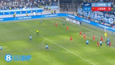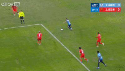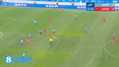 伤停补时3分钟。上半场比赛结束,大连英博0-0上海海港。