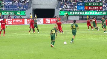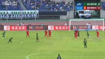 第43分钟,浙江右侧角球开到禁区被解围不远,孙国文弧顶位置迎球抽射打高↓