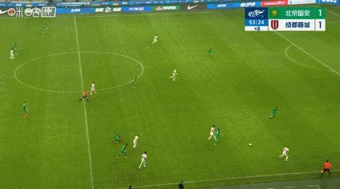 韦世豪打门击中廖力生折射入网,帮助蓉城扳平比分