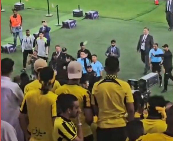 赛后,马宁裁判组离场时,吉达联合球迷爆发出巨大的嘘声,疑似还有人骂了一句“fxxk you”,随后吉达联合球迷还向马宁裁判组连续投掷数个水瓶,其中一个砸到了安保人员身上,马宁裁判组在护送下离场。