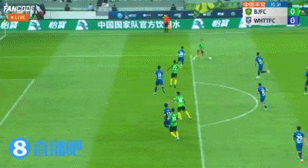 中超第17轮,国安vs三镇比赛第15分钟,阿代米边路传中,方昊禁区中路跟进推射破门,国安1-0领先三镇。