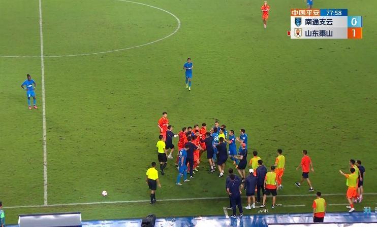 泰山vs南通第78分钟,刚刚替补登场的李湘彬放倒了莫伊塞斯,双方爆发冲突!