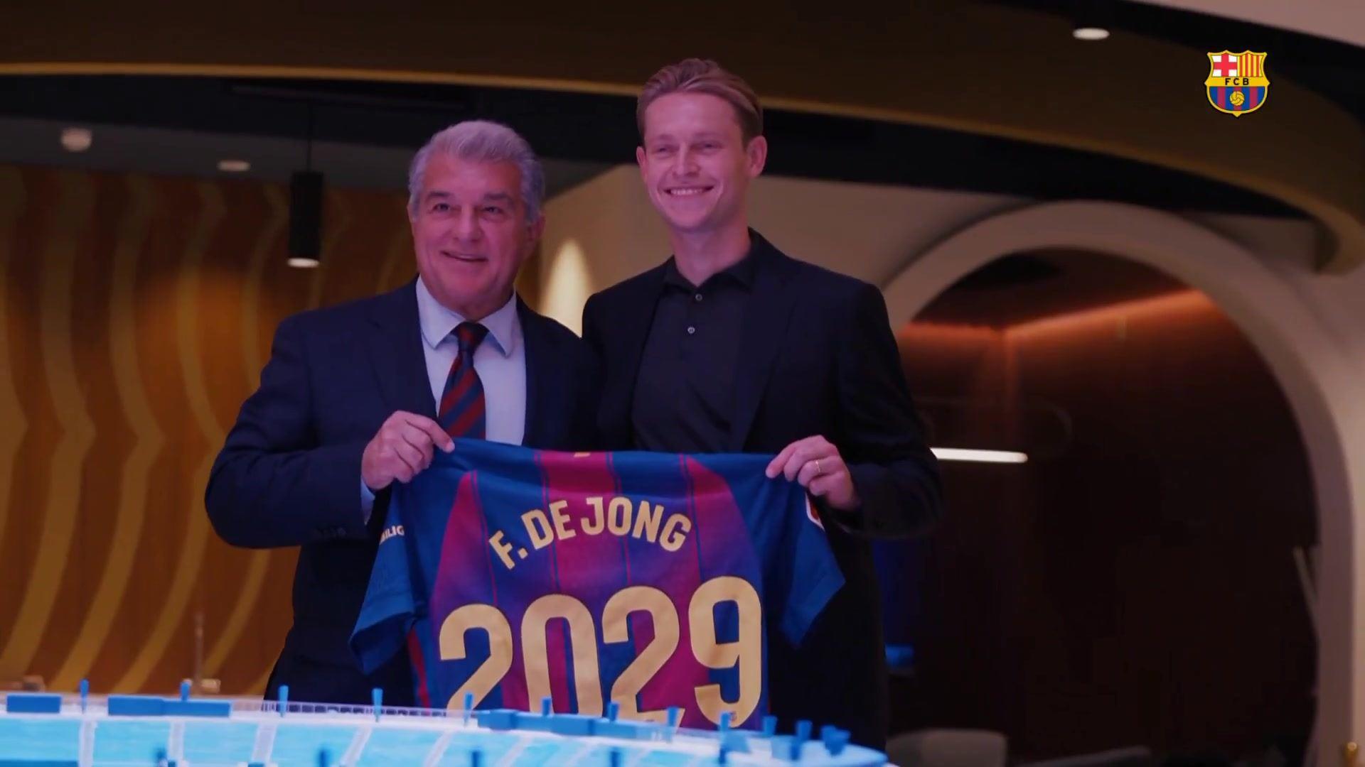 搜体育 足球资讯 巴萨官方晒视频纪念德容续约:弗兰基,2029