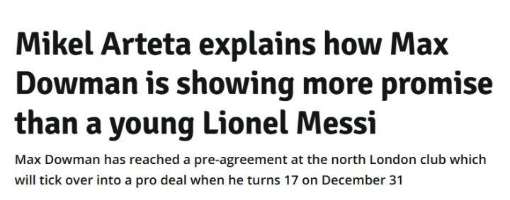 此后多家英媒发布文章,表示阿尔特塔将道曼与梅西相比较↓