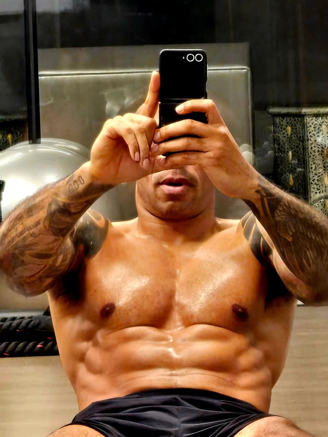 搜体育 足球资讯 自律!48岁亨利晒与伴侣健身日常,腹肌大腿肌线条分明