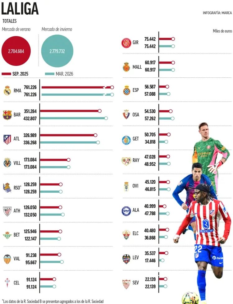 与此同时,西甲仍然是欧洲干预性最强的案例之一。这一模式在一些人看来是竞争上的障碍,而在另一些人看来则是稳定性的保障。无论如何,工资上限仍将是西班牙足球最具决定性影响的数据之一,甚至在新赛季开球之前就已如此。