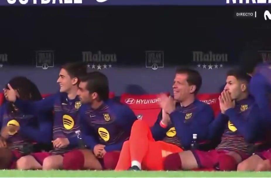 转播方Movistar 的镜头捕捉到,当巴萨替补席看到冈萨雷斯这样的举动后都大笑起来,加维向众人模仿了他的动作,替补门将什琴斯尼更是翘着二郎腿看球,鼓掌大笑。