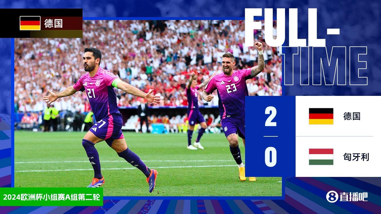 欧洲杯A组第二轮,德国2-0匈牙利取两连胜提前出线,京多安传射建功,穆西亚拉破门。