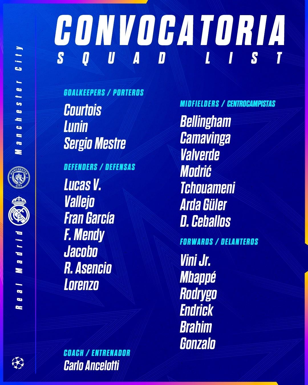 很显然,VS曼城安切洛蒂大概率还是只能靠小将们来撑门面,在巴斯克斯受伤的情况下,他的四后卫之设定就越发困难了,楚阿梅尼、劳尔-阿森西奥、弗兰-加西亚是可能的主力,另外一个有可能会被巴尔韦德来客串的。虽然看起来“不够出色”,然而想击败他们可是不容易的,曼城一定要规避再次重蹈马竞覆辙的问题。