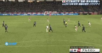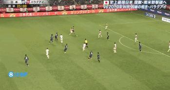 第20分钟,巴拉圭队取得领先,博巴迪里亚中圈长传,阿尔米隆前场精彩卸球后凌空扫射破门,巴拉圭队1-0领先日本队。↓
