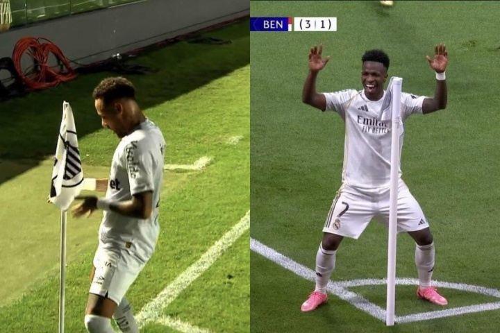 巴甲第4轮,桑托斯主场2-1击败瓦斯科达伽马,内马尔梅开二度,赛后他接受了NR Sports记者Nat Guareschi的采访,谈及模仿维尼修斯在角旗杆旁跳舞庆祝。
