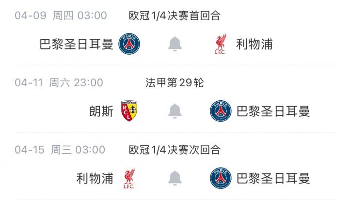 与此同时,联赛方还向朗斯俱乐部提出一项赛程调整建议:若巴黎圣日耳曼晋级欧冠半决赛,则考虑将朗斯对阵南特的第33轮比赛提前至5月8日周五进行。