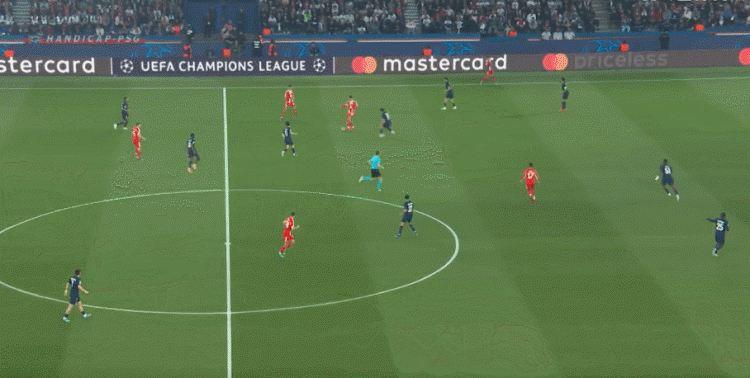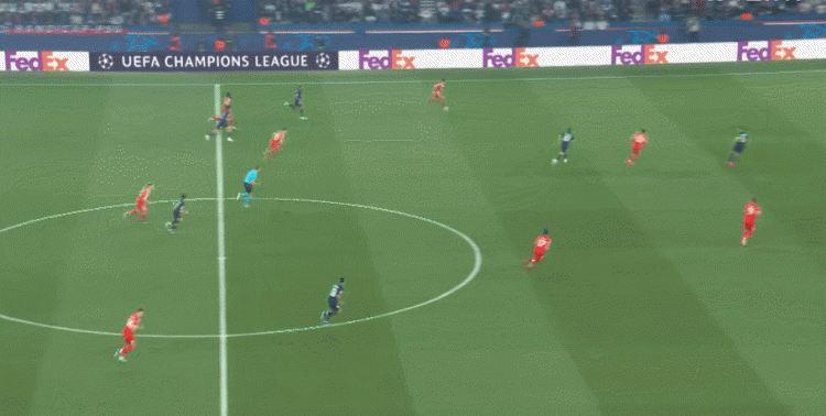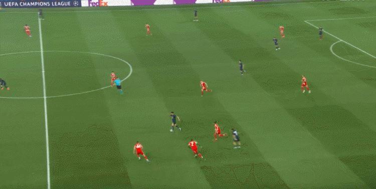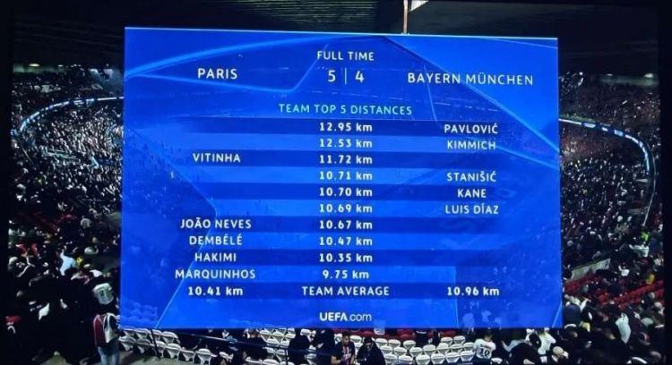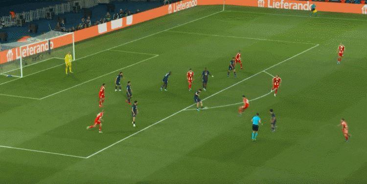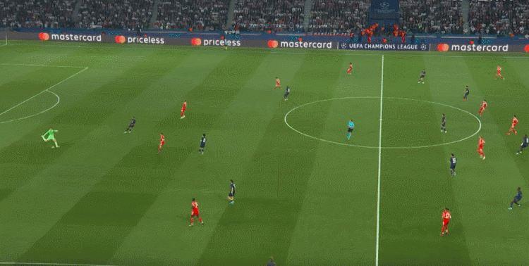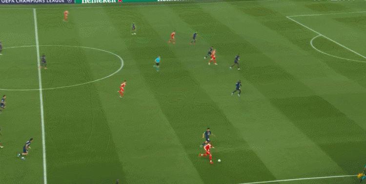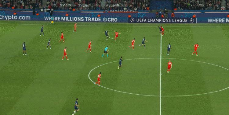 斯坦尼西奇、若纳坦·塔和基米希在回追过程中都很吃力,巴黎经常可以打出纵贯全场的快攻,比分一度被拉开。