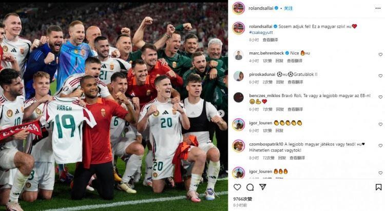 匈牙利在本轮欧洲杯1-0绝杀苏格兰,多位大将也在赛后发文纪念。