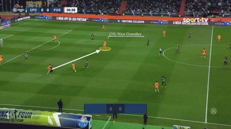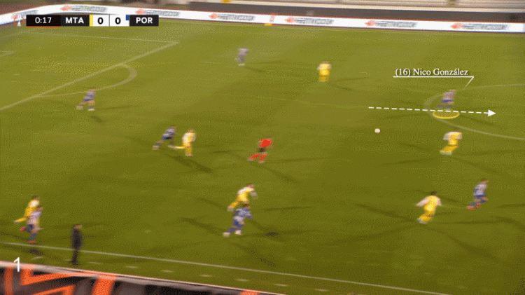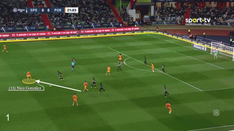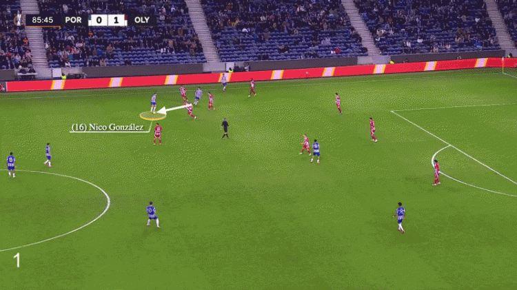 在对阵葡萄牙体育的比赛中,尼科-冈萨雷斯也展现出了在寻找到合适传球空间之时,他的传球能有多么精准。