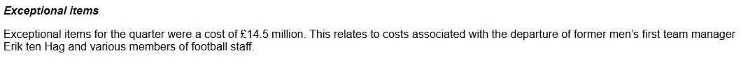 而在曼联财报的的财务信息细则中,还可以看到球队解雇滕哈赫所花费的费用为1450万镑。