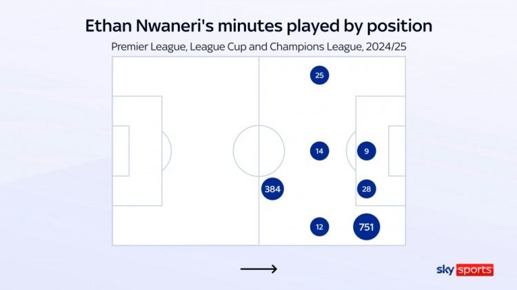 当然,恩瓦内里在本赛季早些时候的联赛杯中也曾出现在右中场的位置上。此外,阿尔特塔也表示,恩瓦内里能够出现在左中场,甚至是9号的位置上。换而言之,恩瓦内里的多位置适应性,也能为他提供更多融入球队的机会。