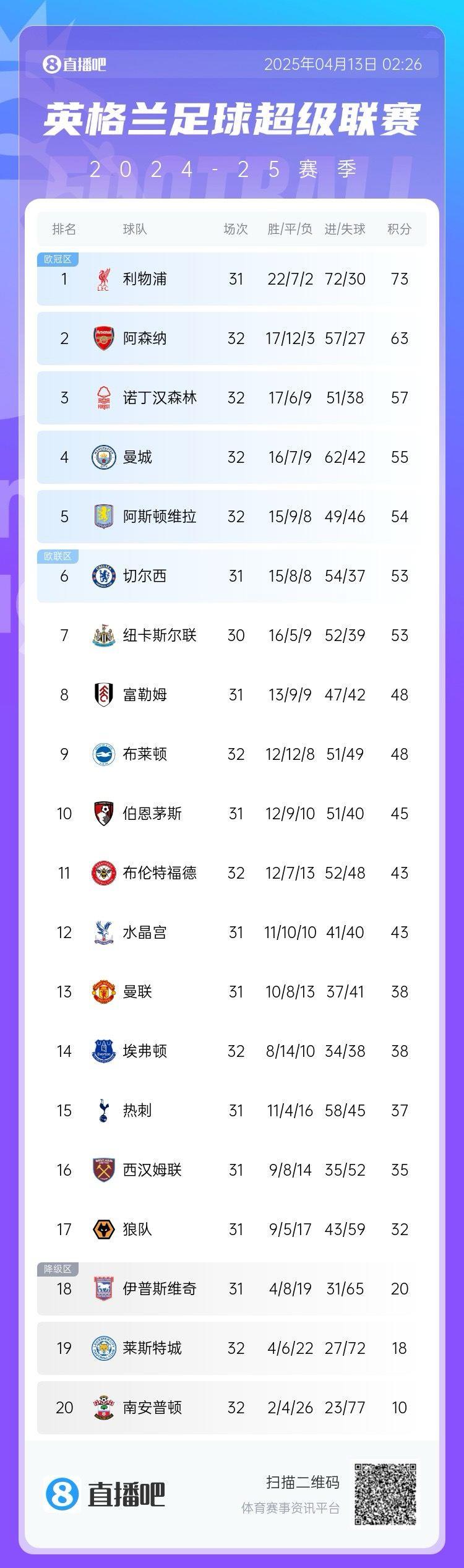 搜体育 足球资讯 早报:阿森纳1-1布伦特福德,利物浦再拿9分即锁定冠军