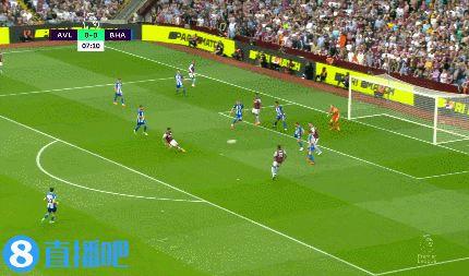 维拉vs布莱顿第8分钟,道格拉斯-路易斯破门,维拉1-0领先。维拉超越热刺,重回第7。