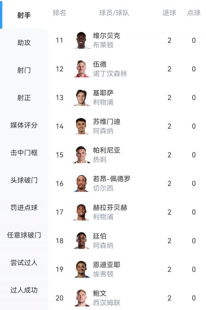 除了明天凌晨埃弗顿vs西汉姆的比赛,英超前6轮其余比赛均已结束。英超射手榜方面,哈兰德轰入8球断层领跑,杰顿-安东尼、塞梅尼奥和伊戈尔·蒂亚戈4球位列第二,埃基蒂克、约克雷斯、恩佐等6名球员打入3球。
