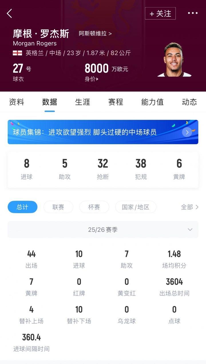 据英媒《泰晤士报》报道,多支英超球队有意维拉球员罗杰斯,维拉对他的估价超过8000万镑。