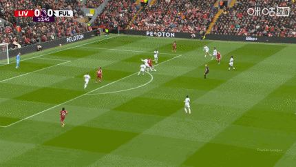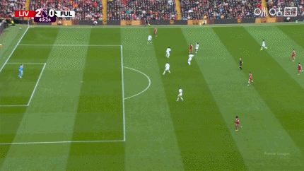 第41分钟,恩古莫哈禁区内左侧再次得球,内切斜传,加克波卸球分给萨拉赫,法老不停球直接左脚兜射远角破门!利物浦2-0领先富勒姆↓