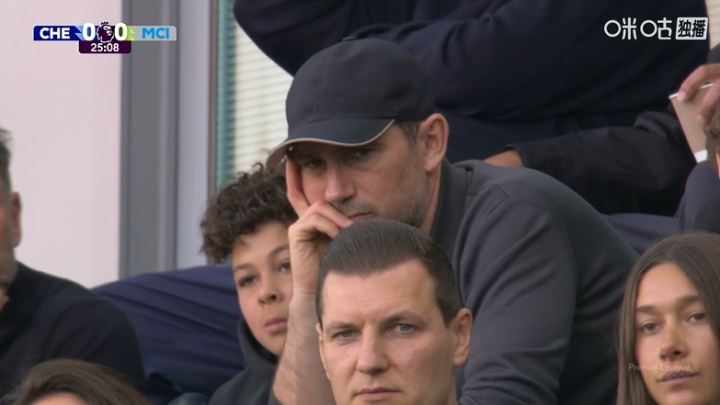 比赛第26分钟,转播镜头捕捉到看台上现场观战的兰帕德,他在本场比赛的对阵双方都有效力过,此前还曾执教老东家切尔西。