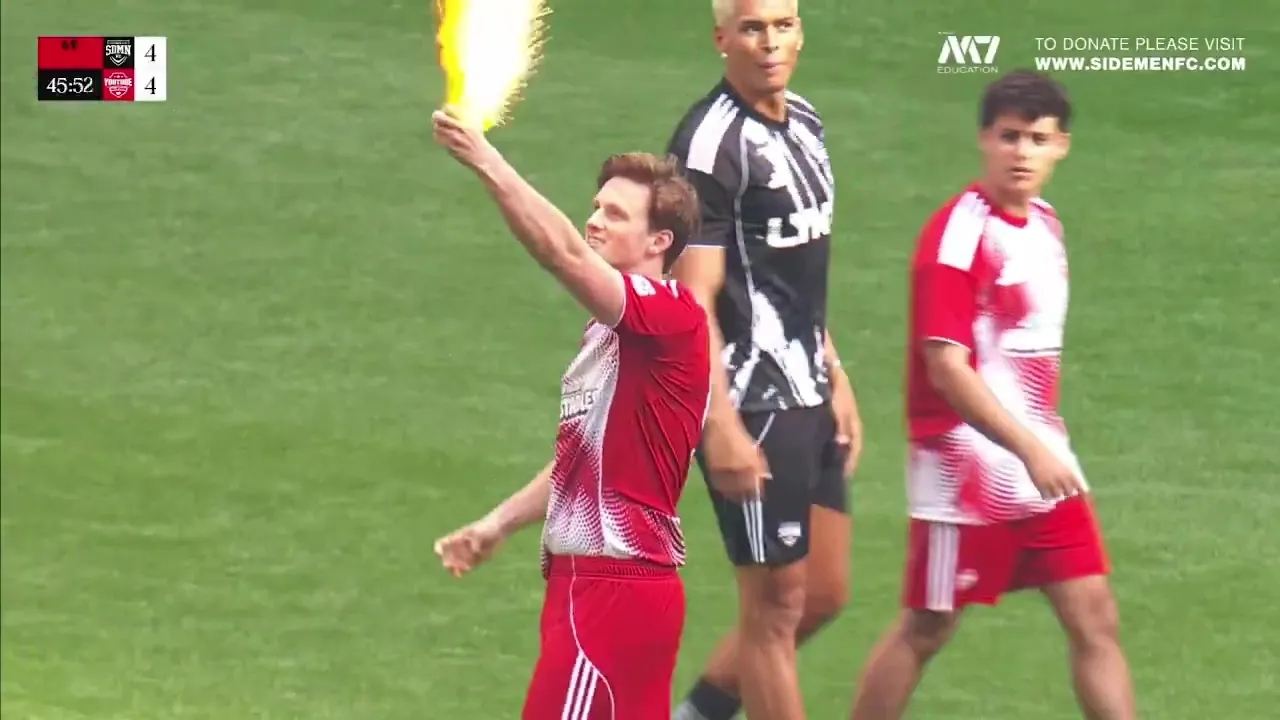 在一年一度的英国Sidemen慈善足球赛中,网红MAX FOSH再次整活,用魔术把自己吃到的黄牌变消失了。