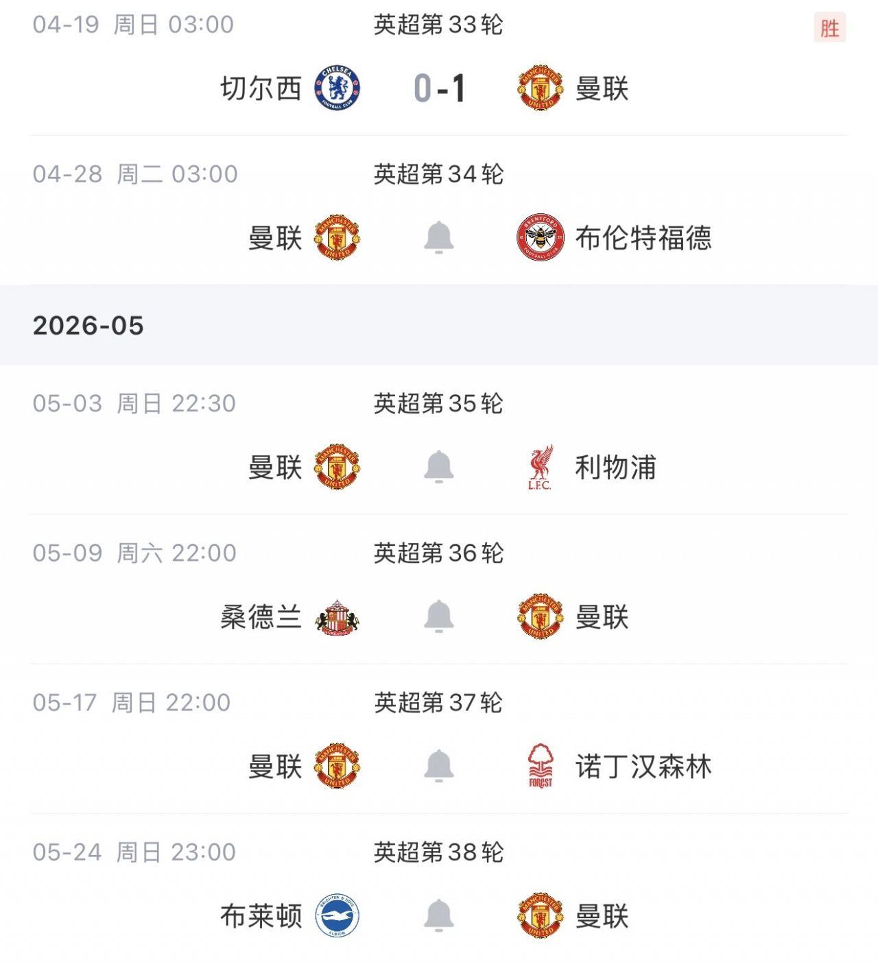 曼联剩余赛程↓