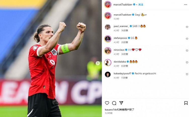 奥地利在本轮欧洲杯3-1力克波兰,几位核心球员也在赛后齐齐晒照庆祝胜利。